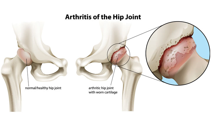 Osteoarthritis – Often referred to as “wear-and-tear arthritis, a condition that damages the cartilage. Cartilage is essentially responsible for protecting the bony ends of the hip and helps to move the joint smoothly.
